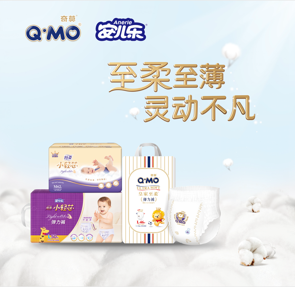 ag亚娱集团安儿乐婴儿纸尿裤品牌成立于1996年,深受广大家庭信赖,高端婴儿纸尿裤Q-MO产品也是ag亚娱集团近几年推出的全新产品。